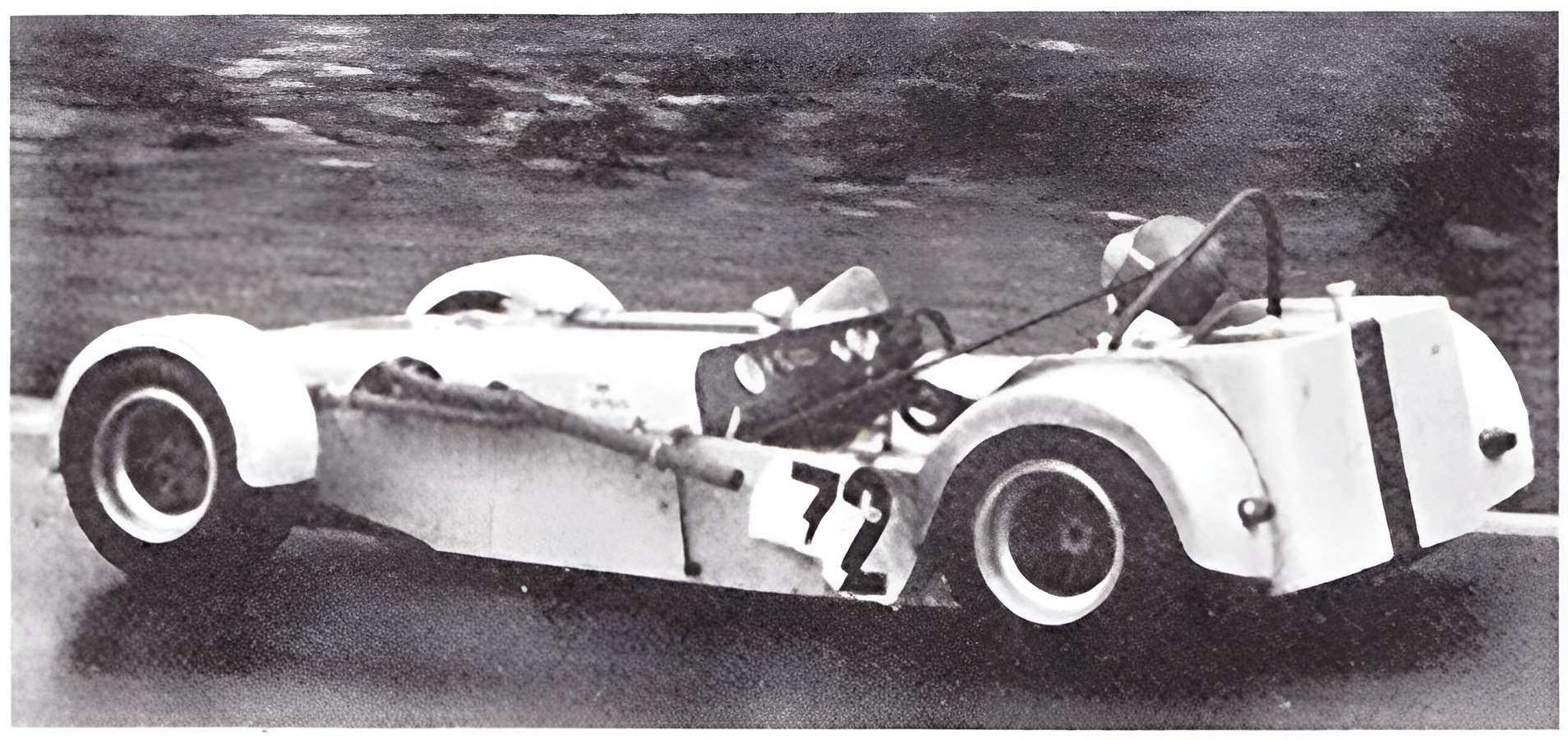 Below is the 7X as modified by Barry Foley. The rear frame of the car has been removed, and spoilers have been added to the car. The car was purchased by Barry Foley from Tim Goss in 1972, and raced by him and Robin Hall in Clubmen’s events.